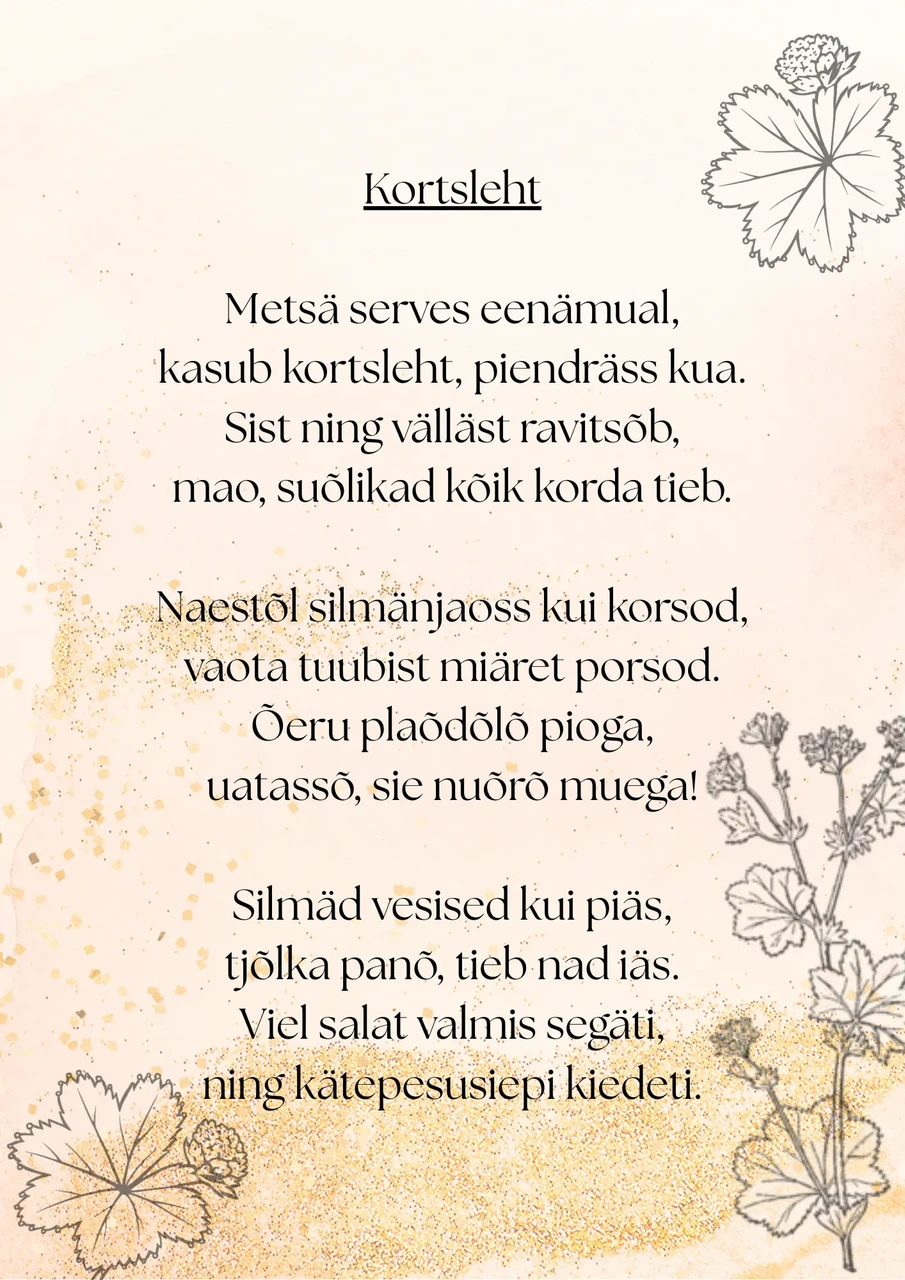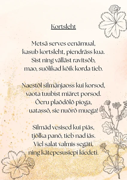 Laps õpib tundma loodust ja märkama muutusi looduses vastavalt aastaaegade vaheldumisele. Laps õpib väärtustama keskkonda loodusmatkade ning õuesõppe toel. Igaks kuuks on õpetaja Elme loonud, loomas ühest ravimtaimest luuletuse, mida ühiselt õpitakse. Ikka kihnu keeles.