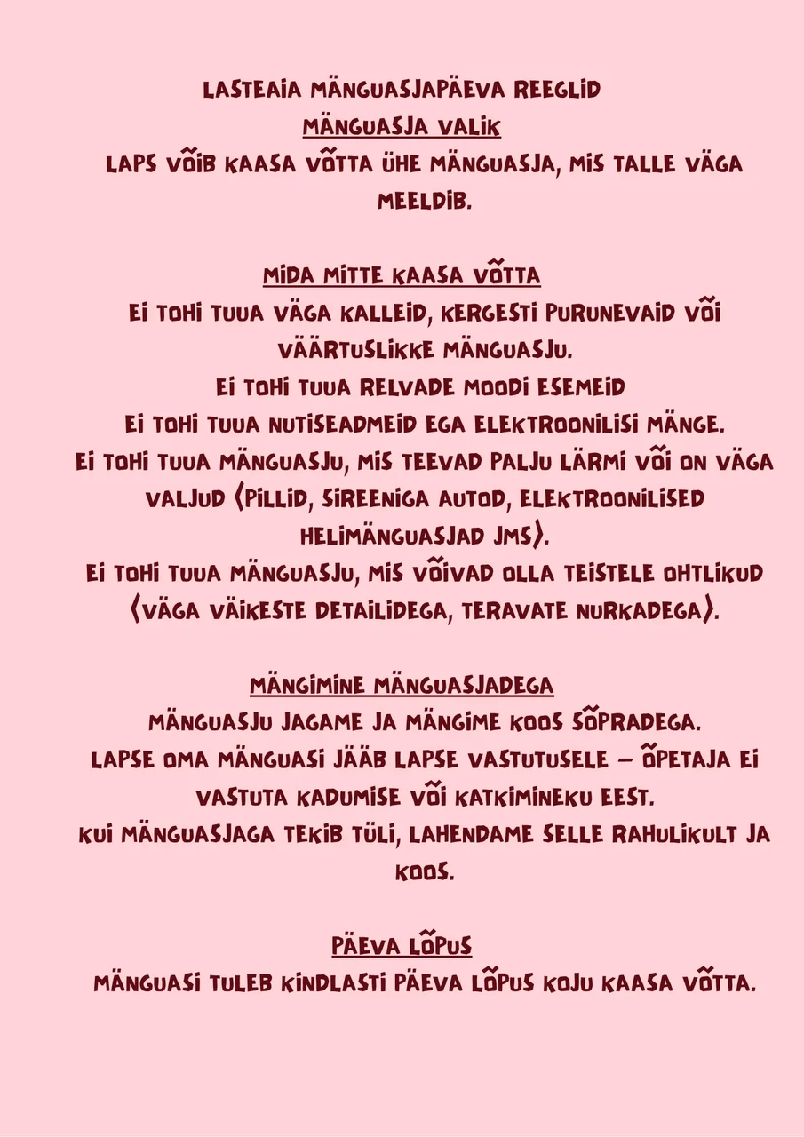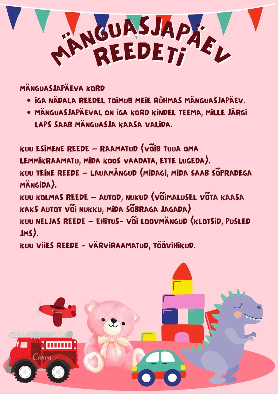 | 9.15-11.30 | Hommikuring, õppekasvatustegevused ja mängud |