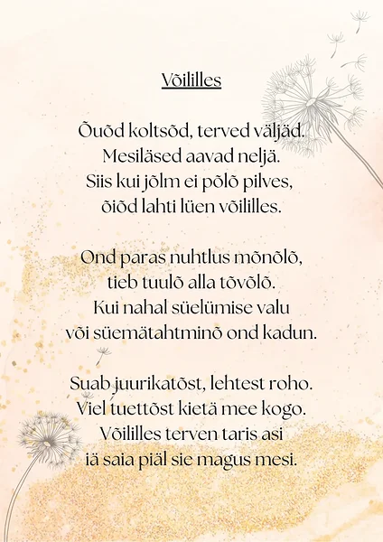 Laps õpib tundma loodust ja märkama muutusi looduses vastavalt aastaaegade vaheldumisele. Laps õpib väärtustama keskkonda loodusmatkade ning õuesõppe toel. Igaks kuuks on õpetaja Elme loonud, loomas ühest ravimtaimest luuletuse, mida ühiselt õpitakse. Ikka kihnu keeles.